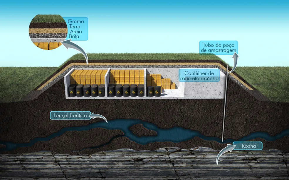 Os rejeitos radioativos continuam guardados em Abadia de Goiás, onde foram acondicionados em contêineres de concreto. Terra+1