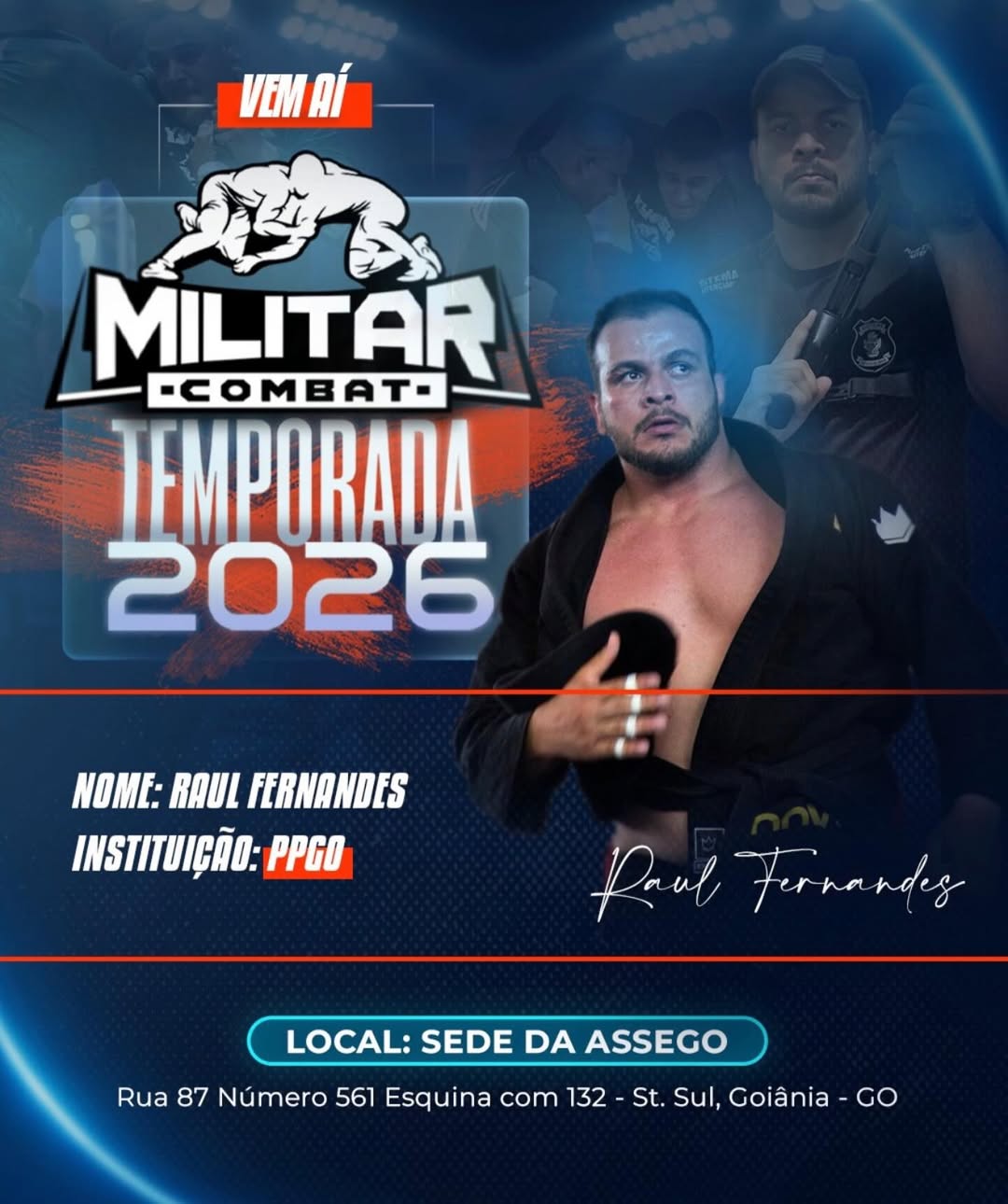 Além do Pan IBJJF, o atleta goiano Raul Fernandes também estará presente no Militar Combat 2026, competição que será realizada na ASSEGO, reunindo atletas de alto nível ligados às forças de segurança e convidados especiais.